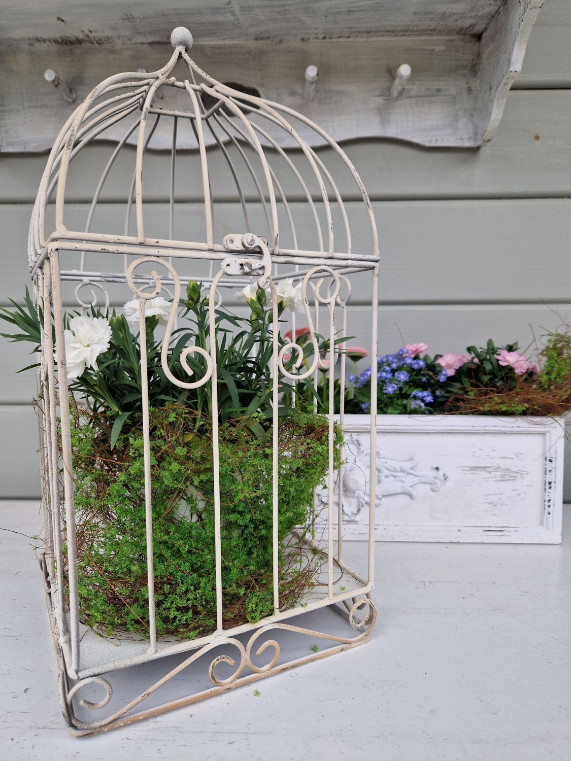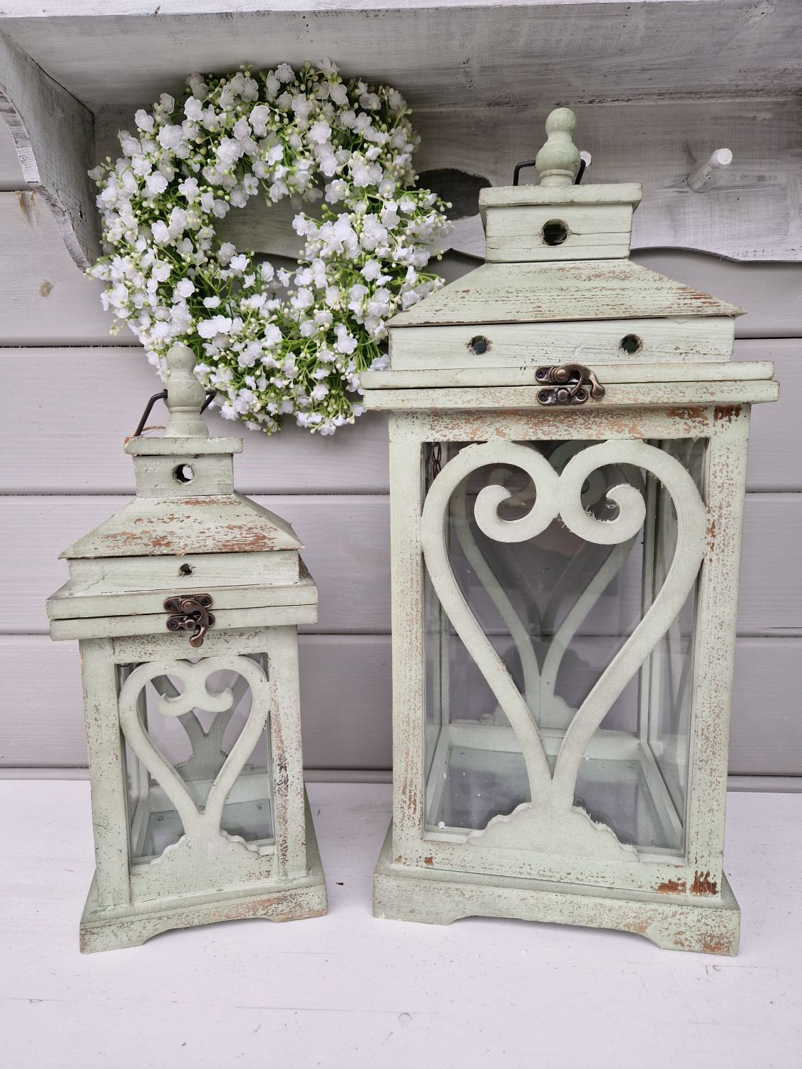 Die Kombination von Weiß und Naturtönen haben einen großen Anteil am Shabby Chic Look. Die zarten Töne zaubern eine pastellige Stimmung. Der Material und Mustermix bringt Abwechslung ins Spiel. Weißtöne zu kombinieren wirkt immer edel, aber nie kalt. Das macht den besonderen Charme aus. Ob mit Kissen und Plaids oder der Tischdeko, wie Windlicht, kleinen Laternen oder Kerzenhaltern, in Weiß kann man mit allen Materialien und Mustern hervorragend spielen.